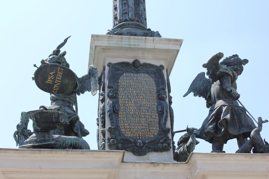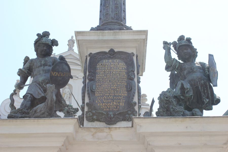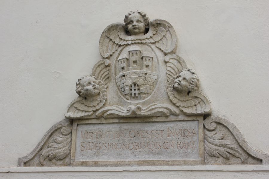 Noel took this picture outside the Primate's Palace in Bratislava. (Photography was not allowed in the palace itself). The Latin says "Envy is the companion of virtue" and somewhat unrelatedly "If God be for us, who can be against us?" This demonstrates a danger of writing in stone. The engraver ran out room at the end of the last line and wrote "contrans" instead of "contra nos"