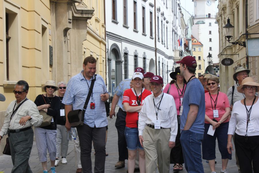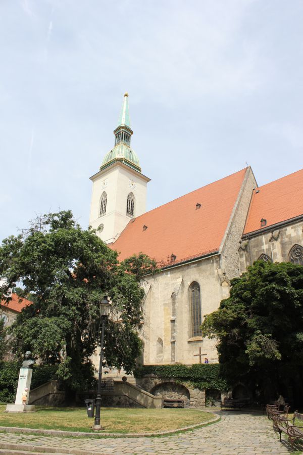 This is our tour of Bratislava. The tall man with the bag to Madeleine's left was our tour guide. He was quite entertaining and informative at the same time. He made jokes like, "Here you can buy some authentic things made from Bratislava...or maybe made from China..."