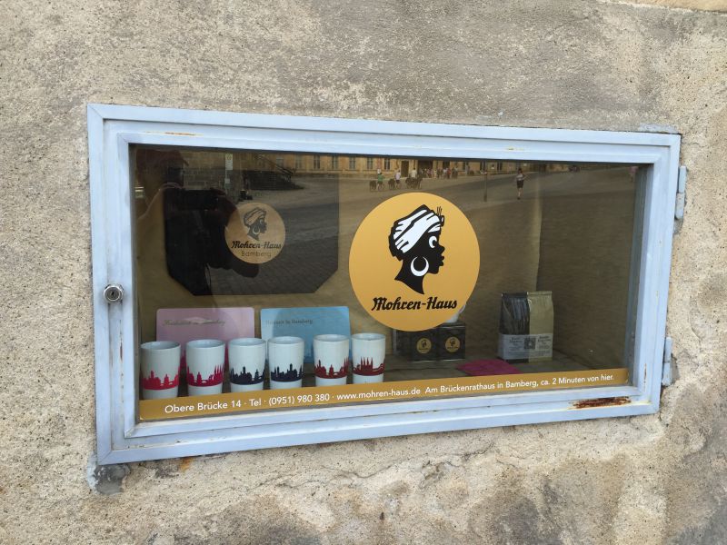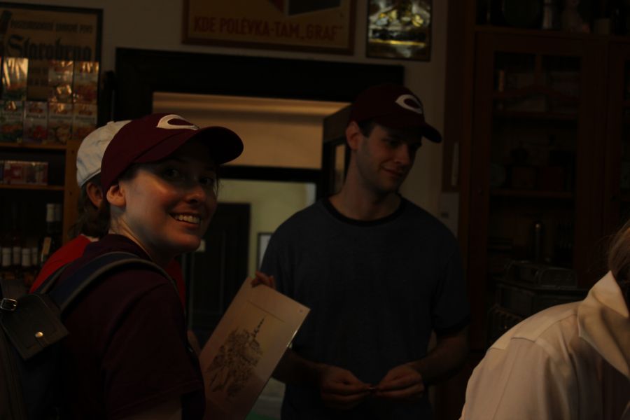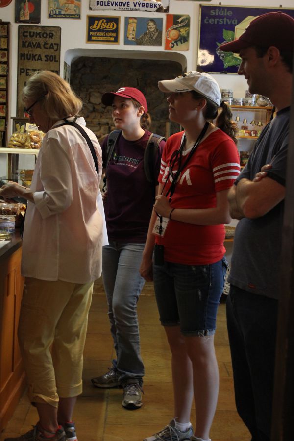 After the tour, Mama, Margaret, Madeleine, Noel, and Joel went shopping in this store. Margaret bought traditional Bratislavan black current wine, Madeleine bought the picture seen in her hands, and Mama bought chocolates.