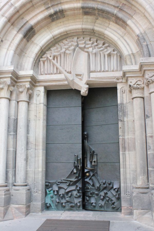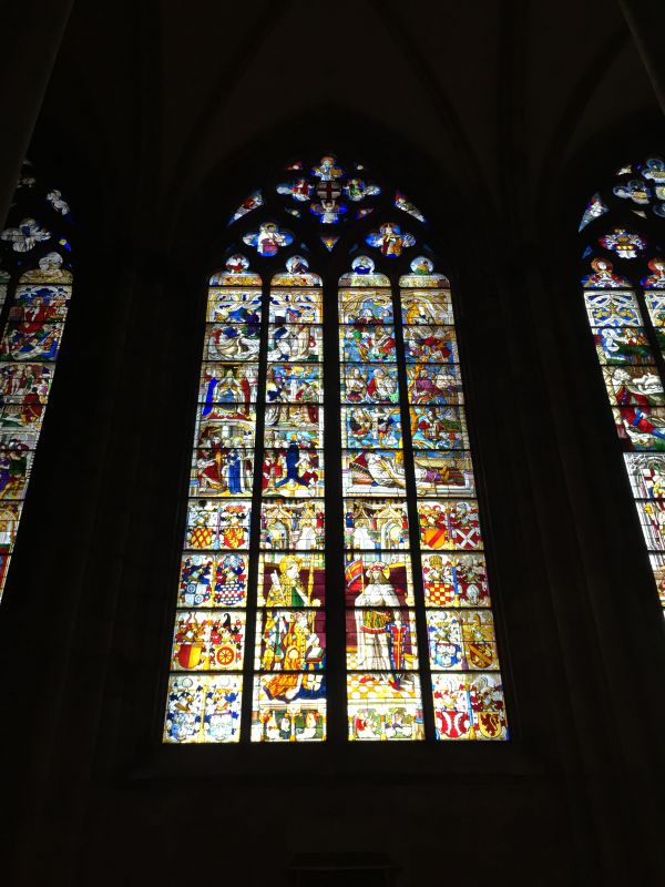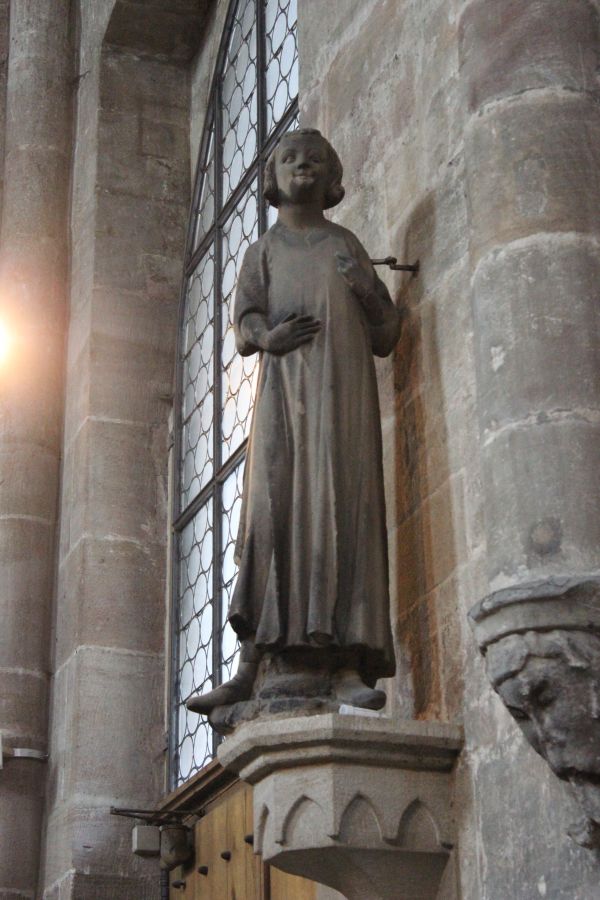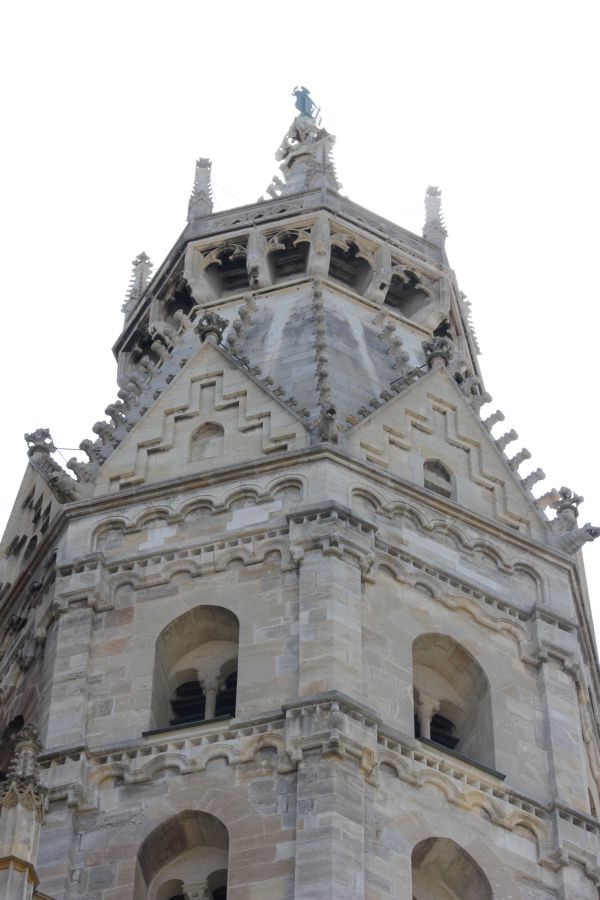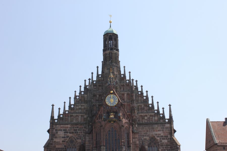 This is the church in the square in Nuremberg called "Church of Our Lady". Sadly, the land where it sits was historically Jewish land that was taken from them in order to build a marketplace as well as this church. It is a parish church, meaning the church of the lay people. It was built through funding from the local congregation. It was reconstructed after it was destroyed in WWII.