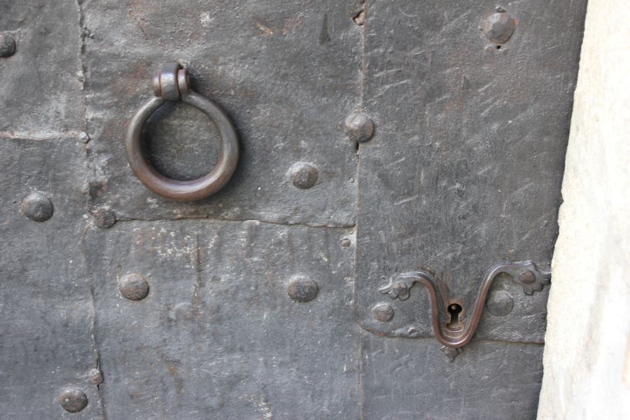 A medieval "keyhole finder". Our guide explained that when you came home after sunset in an age before electricity, finding the keyhole to your front door could be very difficult. With this, the curving shape around the keyhole would help guide it into place.