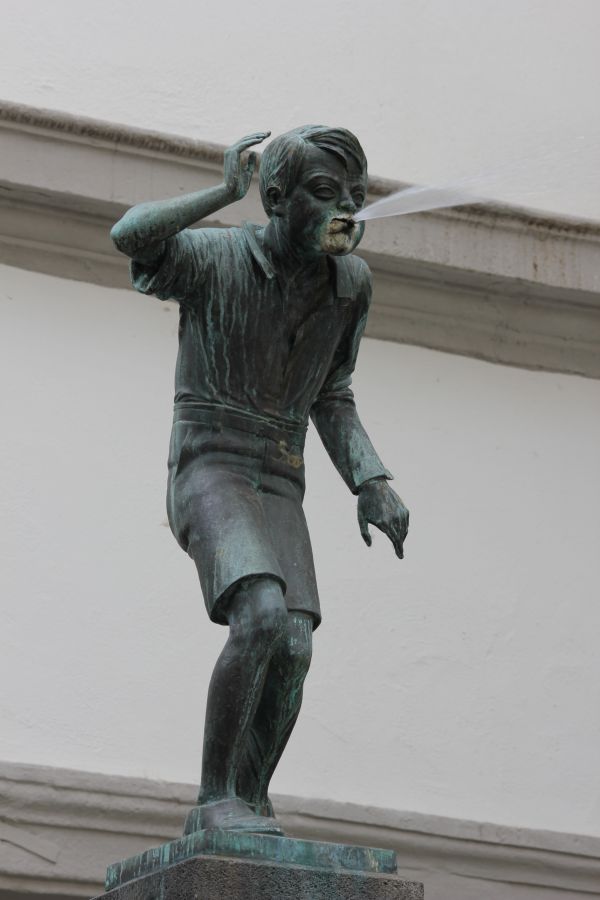 The "Naughty Boy" statue in Koblenz. It spews water from his mouth at you, so you better not stand in front of it and fall for his trick.