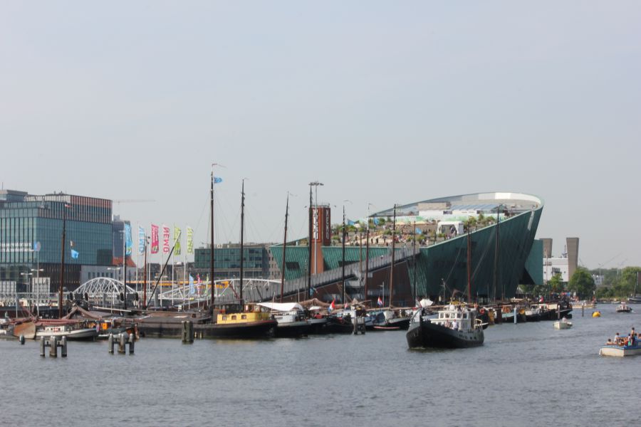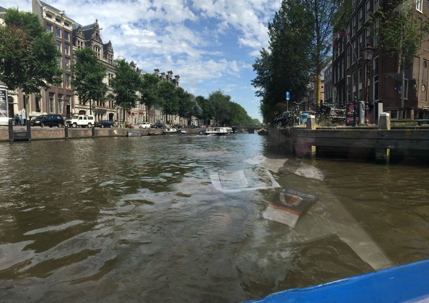 Margot and I took advantage of a very short (~30 min) interval between touring and ship-board lunch to walk into Amsterdam in search of this herring shop, where raw herring is served on bread. I was very keen to try it, especially as July is peak herring season. Margot was very concerned about the time and grew grumpier as it became clear that finding the shop would not be easy. The streets of Amsterdam near the docks and train station are very twisty and confusing and going anywhere on foot means being on constant alert for speeding cars and bicycles that whiz past in every direction. It was also blazingly hot outside. However, we persevered, got some very good directions from a train-station employee on her lunch break, and eventually met with success.