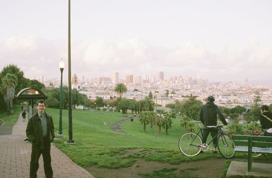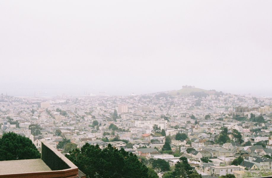 Katie and I hiked up some of San Francisco's steepest streets to enjoy this fog-occluded view over the city. This was supposed to be one half of a panorama, but the other half, I think with Katie in it, didn't come out.