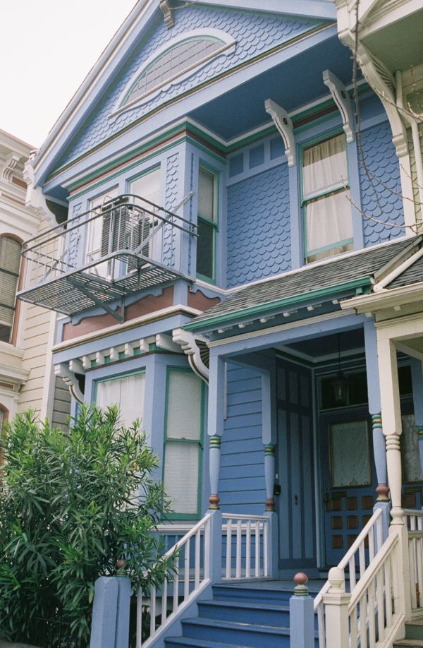 A shot upwards at one of the many very beautiful houses near Karl's apartment. The only way I would ever be able to afford this house would be if it were completely destroyed in an earthquake.