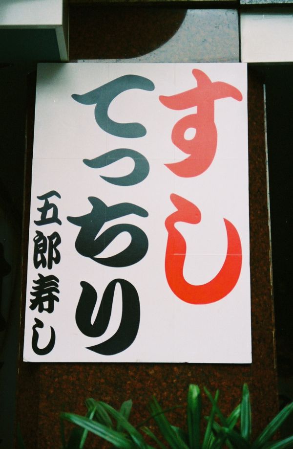 Everyone knows that learning to read Japanese takes years of dedicated study. I didn't have that kind of time, but I did gradually learn to recognize a few hiragana letters. The two red characters on the right say "su-shi". Learning these was very important to me.