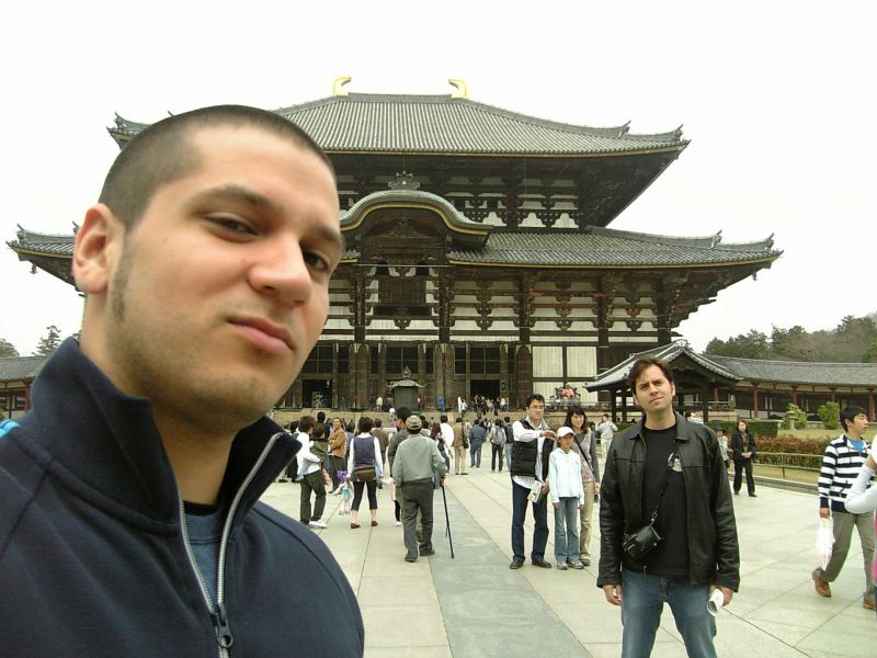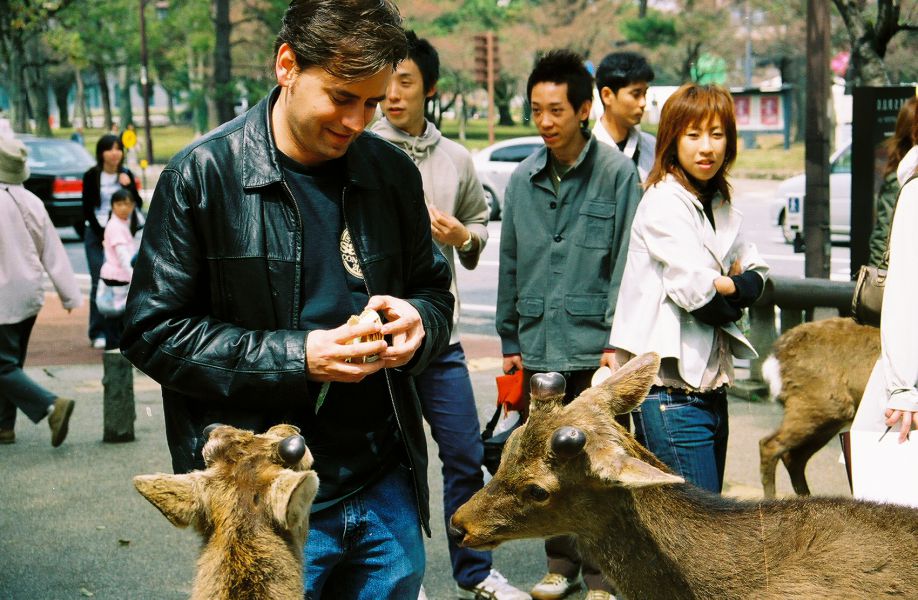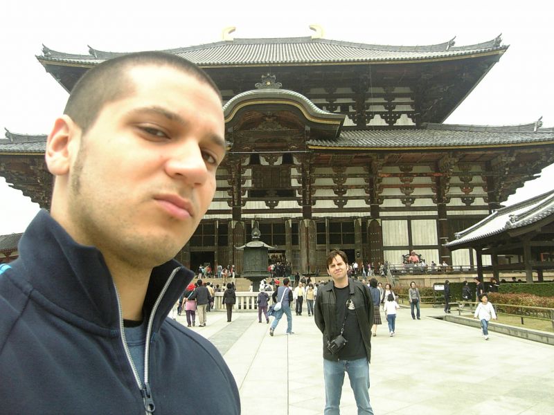 Ben takes a self-portrait (with me) in front of Todai-ji temple, supposedly the largest wooden building in the world. He was trying to recreate a photograph he had taken earlier with his brother David in the background.
