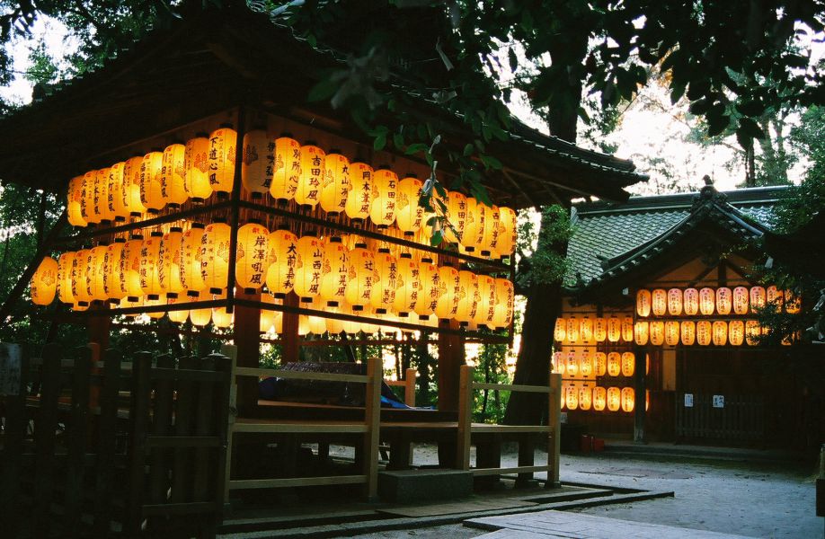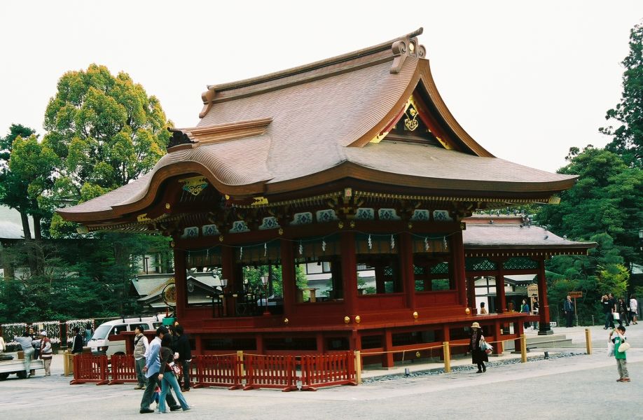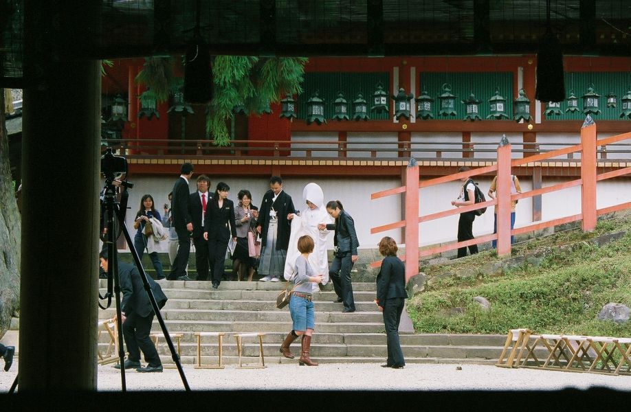 We caught a glimpse of a traditional Japanese wedding taking place on the grounds. Ben told me that weddings like this are no longer as popular and that many Japanese women, enamored of the poofy white dresses and hideous layer cakes of the west, are opting nowadays for American-style weddings. In the cities, phony western churches have been built for no other purpose than to perform such weddings.