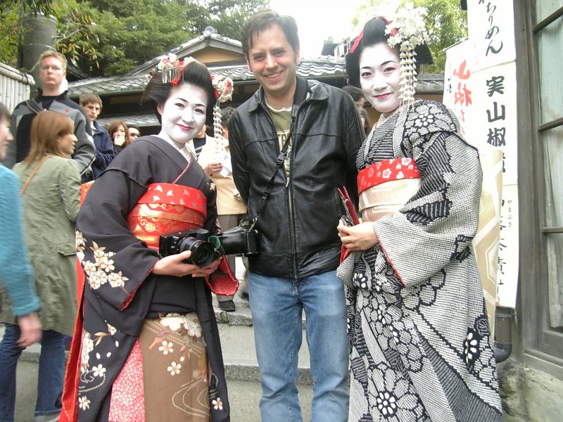 I pose with two absolutely typical and perfectly modern Japanese women who were undoubtedly on their way to play racquetball or something.