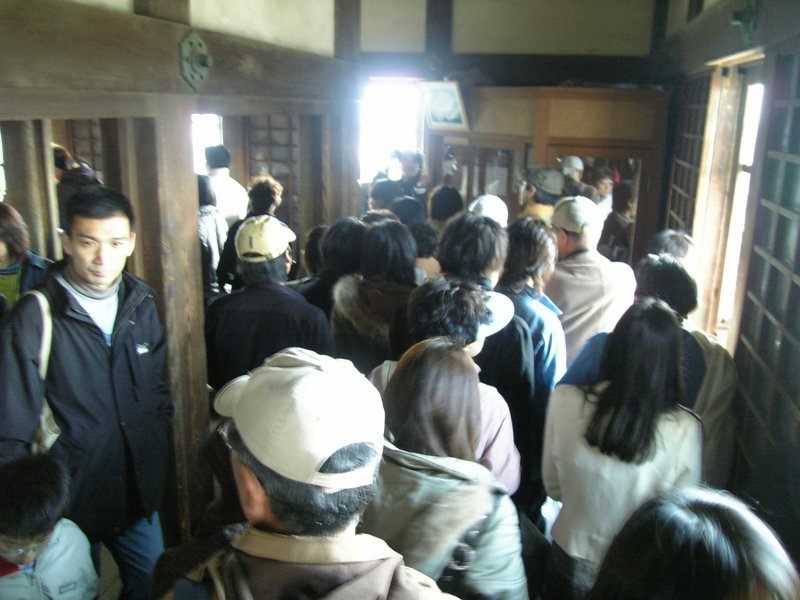 The rest of the inside of the castle was like this. At first we hesitated to take the plunge but the crowd, though thick, moved pretty fast. Still, the castle is enormous and it takes a long time to ascend to the top. Visitors are channeled in a spiral pattern around the perimeter of each story before climbing a steep narrow staircase to the next level.
