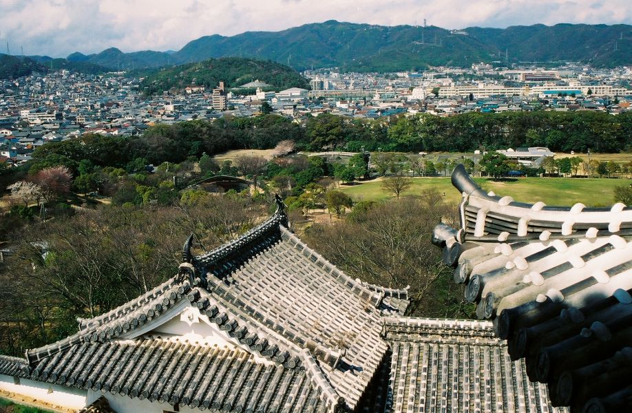 Himeji castle is surrounded by a network of gardens and pathways. Here's one of Ben's shots, taken from one of these.