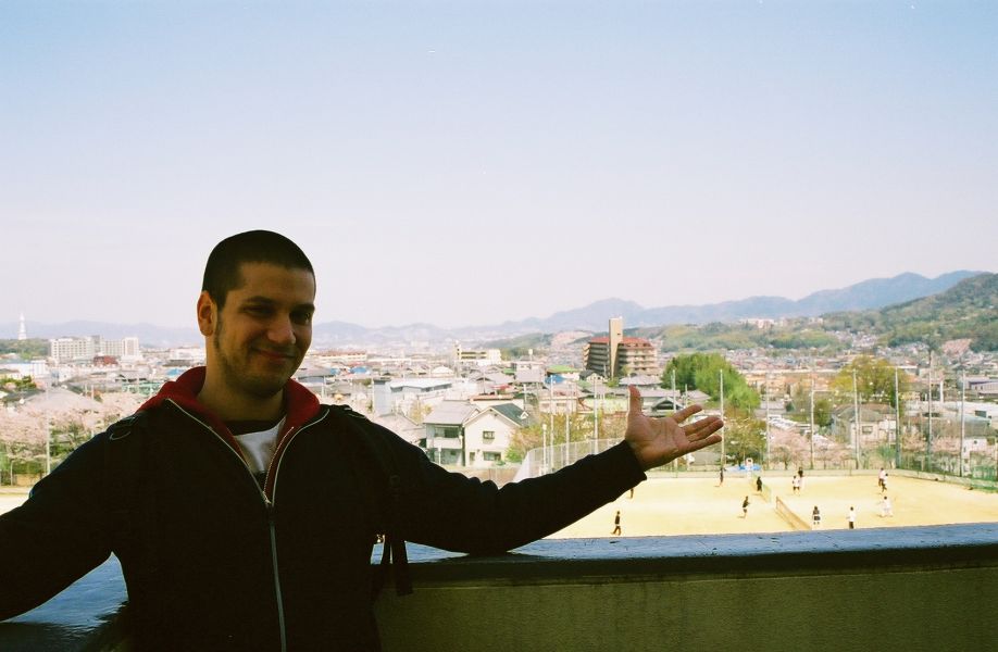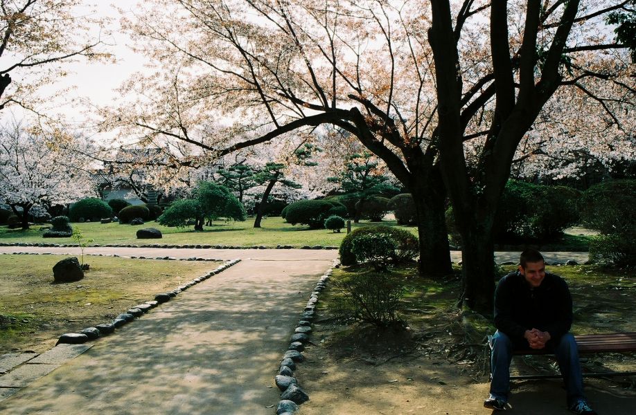 Ben under a blooming sakura (cherry blossom) tree. By complete luck I scheduled my trip at exactly the right time to catch the sakura in full bloom.