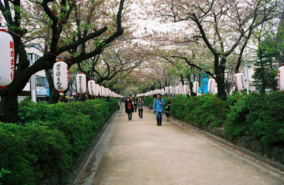 At this time of year the Japanese party all day under the cherry blossoms. Why wouldn't they? Blue tarps and accompanying revelry are everywhere. According to Ben, celebrants arrive very early in the morning to stake out a good location, and spend the rest of the day chatting, eating and drinking with their friends.